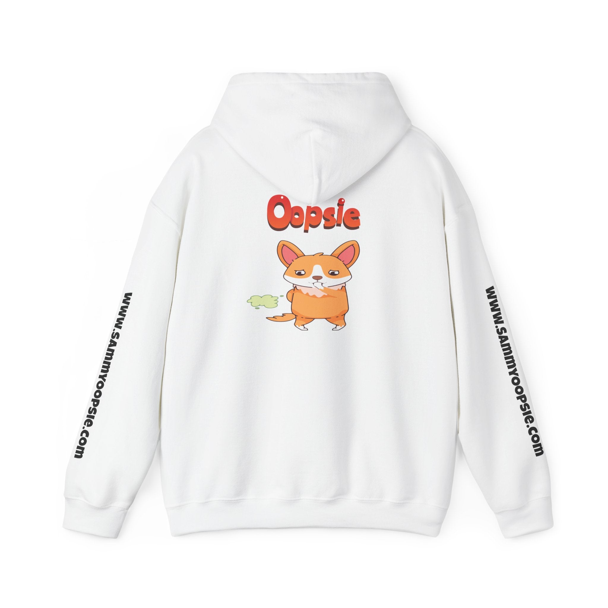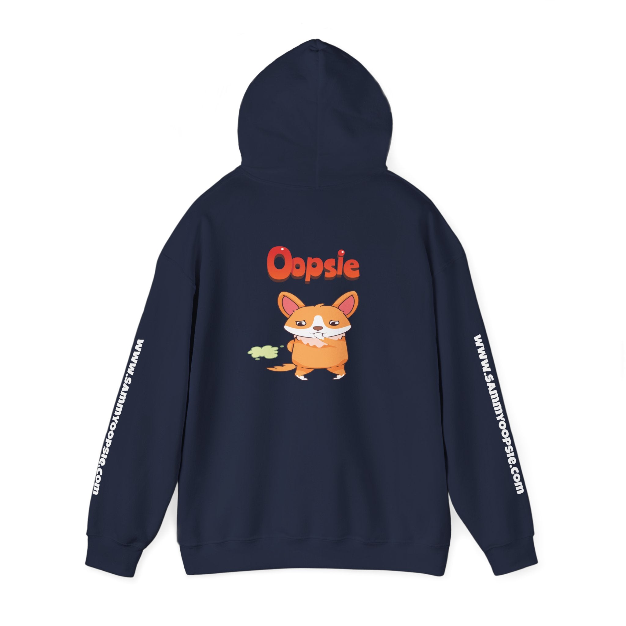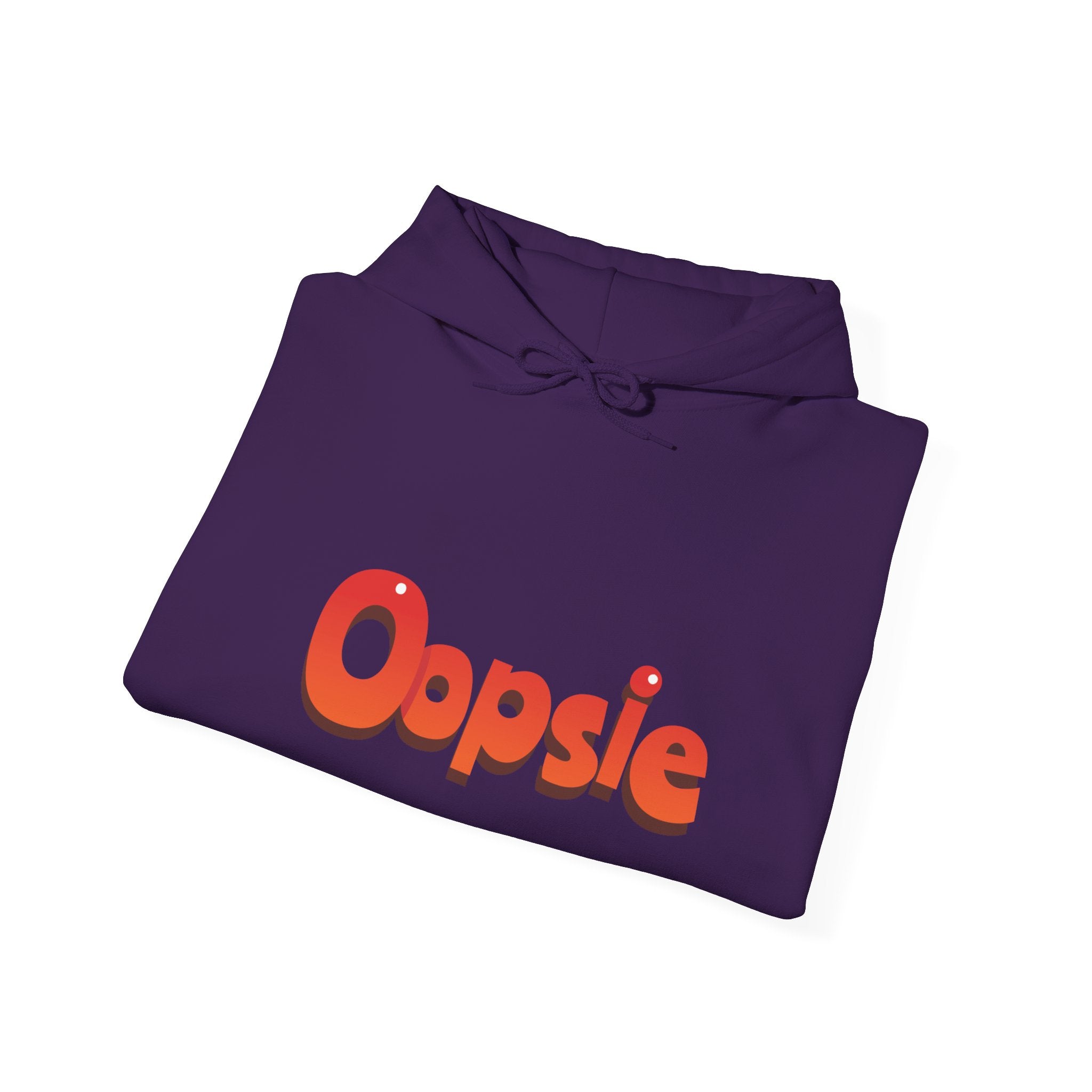 Fun, comfortable, warm hooded sweatshirt perfect for staying cozy during chilly days. This is the signature "Oopsie" designed hoodie is ideal for anyone looking for a stylish and practical garment to add to their wardrobe. It is relevant for casual wear, lounging at home, or outdoor activities. Great for gifting during birthdays, holidays, and special occasions.